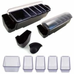 The 4-Pint Garnish Condiment Holder (AKA Fruit Tray) is the perfect space-saving organization solution for your bar, home bar, restaurant, and more. This “condiment-on-ice” tray features a 2” high large space underneath the garnish trays for filling with ice to keep your garnishes chilled, so they’re always fresh and ready to serve to your guests. This garnish condiment tray has a 2 quart capacity, and comes with standard 4 pint trays which allow you to customize your condiments to accommodate different garnish varieties.