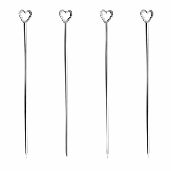 BarConic® reusable stainless steel heart shaped design cocktail picks. Garnish any type of cocktail with these adorable heart shaped cocktail picks. They are perfect for any event or occasion, showing your decorative touch has a luxury feel to guests. They feature a pointed end, great for skewering olives, cherries, appetizers, cheese, and fruit wedges. They measure 4 1/4″ and are a pack of 4.