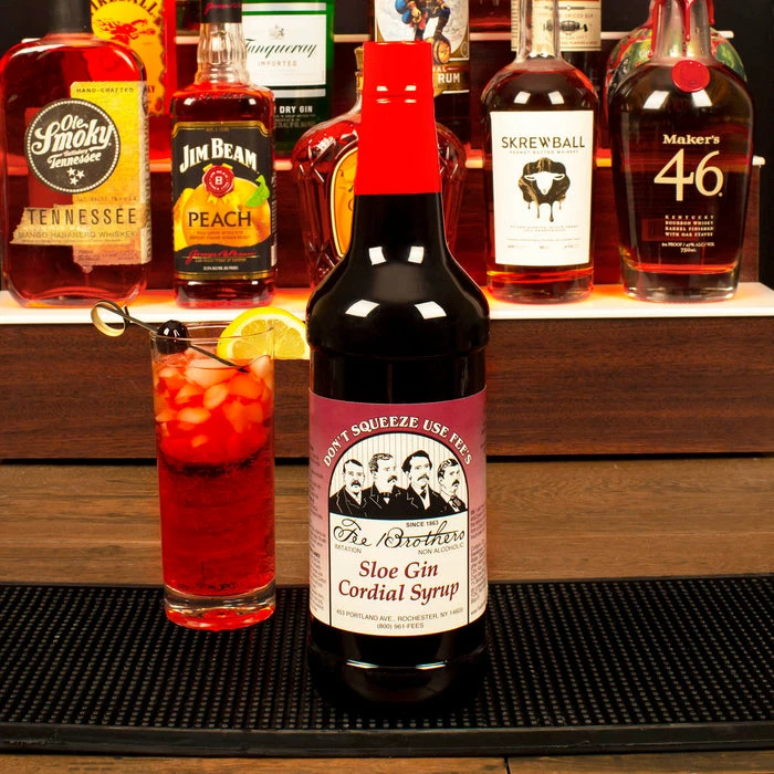 This Sloe Gin cordial syrup allows you to make a variety of drinks that will impress your guest. This syrup has a beautiful rich red color and pairs best with a cocktail like Blackthorn, Sloe Gin Fizz, or an Alabama Slammer. You can also use this product as toppings on desserts or as a flavoring for coffee. This product comes in a 32 ounce bottle and is made in Rochester NY.