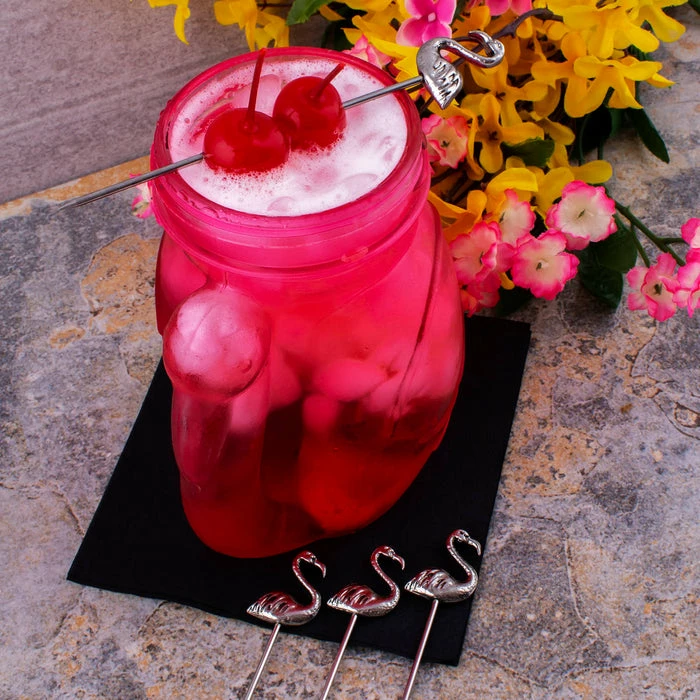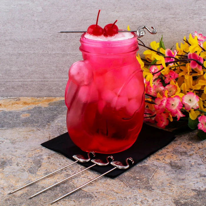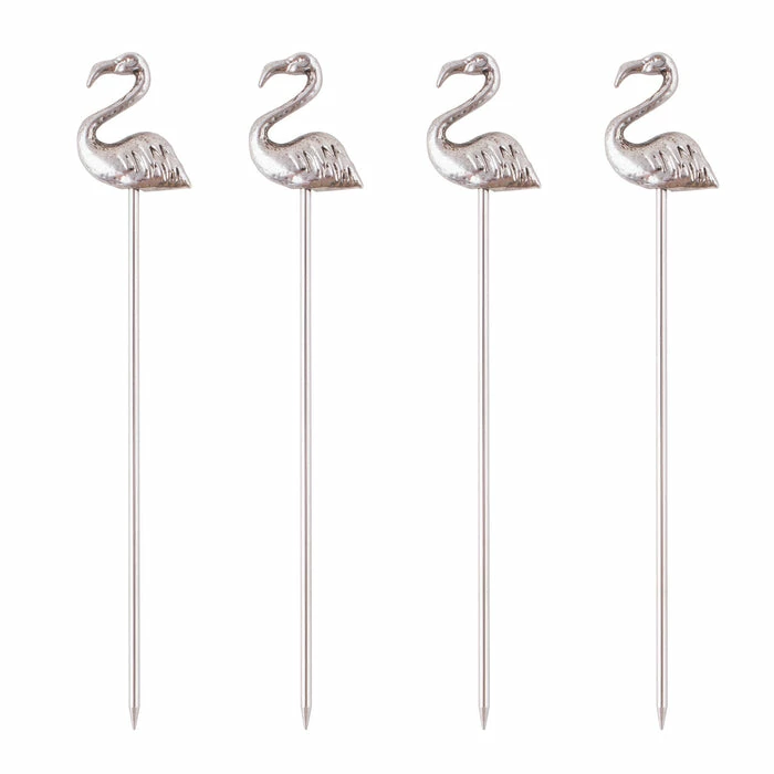 These flamingo cocktail picks are the perfect additive to garnish your drink with. Made from durable stainless steel, these picks are lightweight, sturdy, and feature a perfectly crafted flamingo on top of every pick. They also feature a pointed end that is great for skewering olives, cherries, appetizers, cheese, and fruit wedges. Measures 4.75″ in length and come in pack of 4.