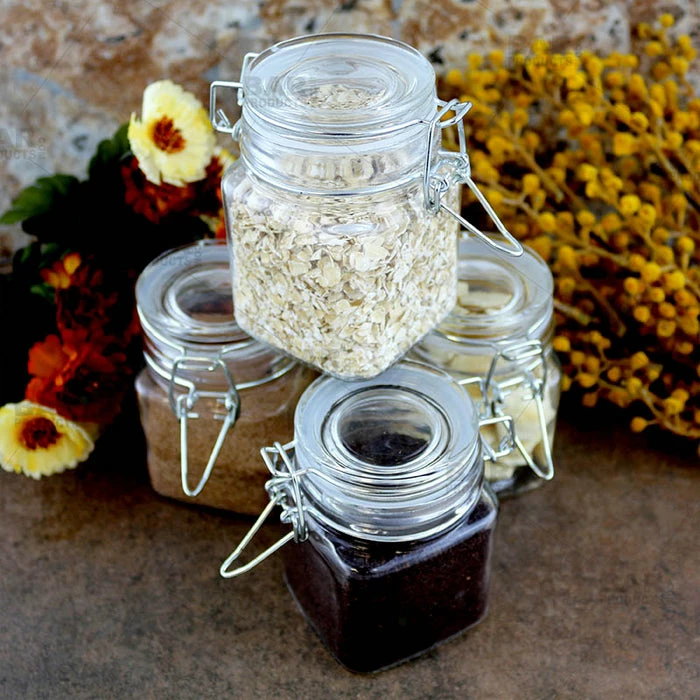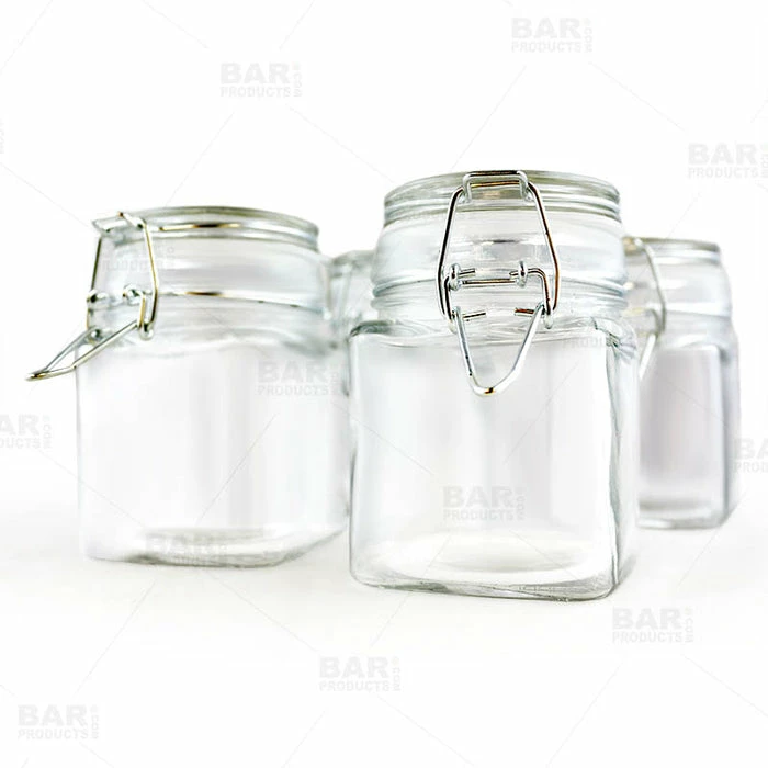 This set of 4 7.25 oz square base mini hermetic spice jars will suite any kitchen, bar or service area where quick access to fresh garnishes and spices are necessary. The highly functional, tight locking seal lid will guarantee freshness and longevity of your ingredients. These jars will also store great in cupboards and they are easily stacked. What a great way to organize while staying sanitary!