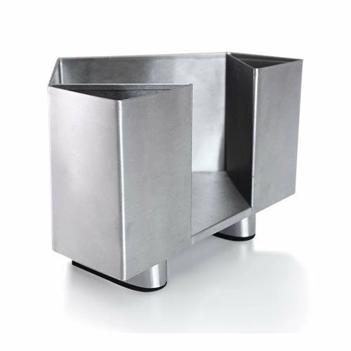 If you’ve got a corner to your bar, then you’ve got to check out this trendy, cool and durable Corner Bar Caddy. Built from a strong stainless steel material, this caddy is sure to endure any common bar abuse. The classy, stainless steel style is desired by many who wish to stay within the latest style trends. It features a standard sized cocktail napkin compartment along with 2 additional side compartments for straws, cocktail picks or stirrers. It stands 5.5″ tall with a 1″ base lift. The base is padded in order to prevent slipping and scratching on the bar surface.
