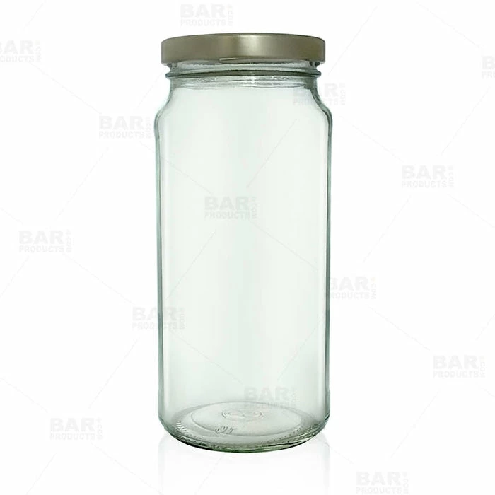 One of the biggest challenges in craft bartending is setting up your station so you can be most efficient throughout your entire service. All craft bartenders can relate to the many fresh ingredients that build their cocktail menu and signature recipes. Having a collection of craft bartending jars such as this tall clear style can definitely add a lot of benefits to your work station and the quality of your craft. Holding 16 ounces, this craft jar showcases a thick, high quality circular mold design along with a gold screw on lid, ensuring longevity and freshness.