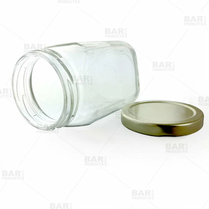 - Gold lid fastens air tight to jar, ensuring longevity and freshness